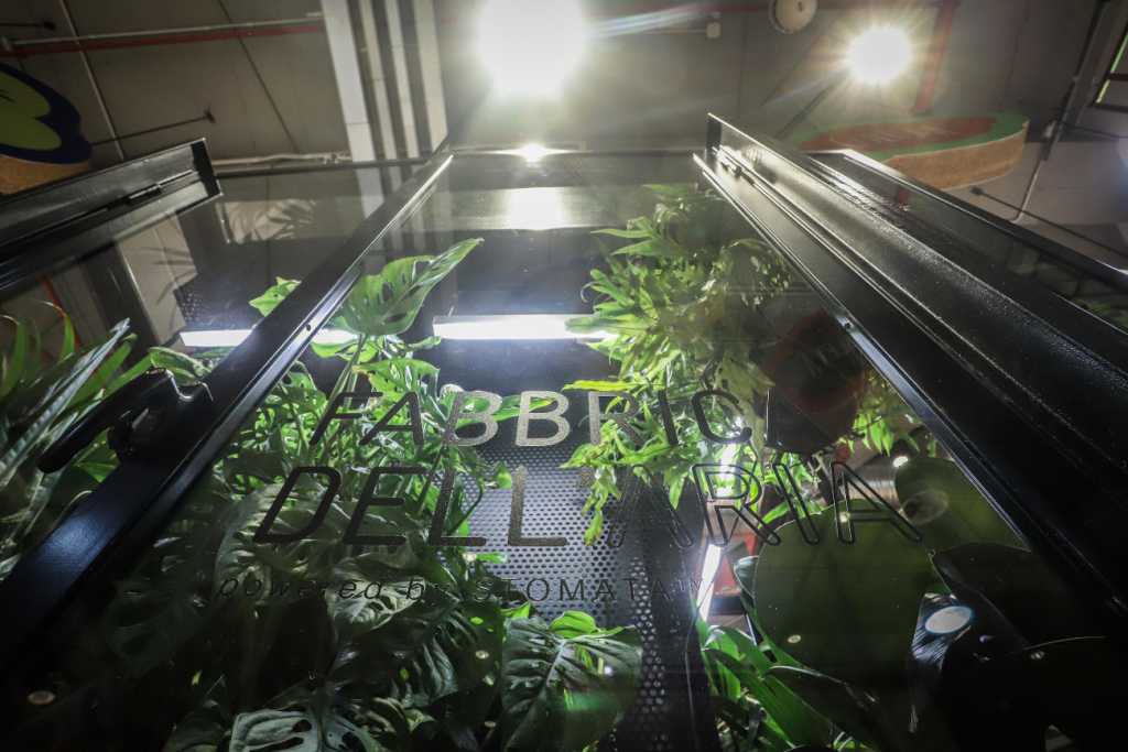 La Fabbrica dell’Aria è un’installazione che sfrutta l’intelligenza delle piante per purificare l’aria degli ambienti chiusi. Agendo come una “biomacchina che respira”, incanala l’aria attraverso un substrato in cui le radici delle piante e i batteri benefici degradano le sostanze inquinanti. L’aria, così purificata, viene poi rilasciata nell’ambiente con il supporto di sensori avanzati che ne monitorano la qualità in tempo reale e ottimizzano le prestazioni del sistema. In una combinazione di natura e tecnologia, la Fabbrica dell’Aria crea ambienti interni più salubri riducendo le sostanze inquinanti come i composti organici volatili. Inoltre, promuove una connessione sostenibile tra l’uomo e il mondo vegetale offrendo una soluzione tangibile per migliorare la qualità dell’aria e il benessere negli spazi chiusi. La Fabbrica dell’aria è strutturata per essere autosufficiente con l’illuminazione e l’irrigazione e non aver bisogno di manutenzione per le piante. Oggi ce ne sono molte già installate in negozi, uffici, in Italia e nel mondo, dalla Thailandia al Giappone. Due sono nei punti vendita Coop di Firenze Novoli e Ponte a Greve. Grazie al contributo di Unicoop Firenze, un ulteriore dispositivo è stato installato presso il reparto maternità dell’ospedale di Careggi a Firenze.