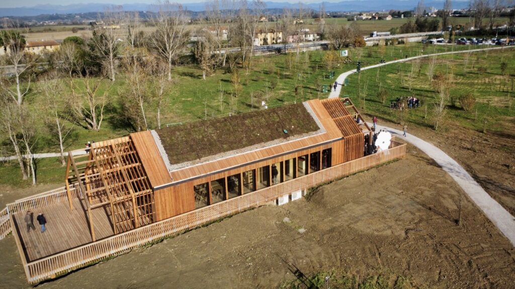 A tre anni e mezzo dall’inaugurazione, il bosco ospita da novembre 2024 anche la nuova aula didattica, uno spazio polifunzionale che potrà essere utilizzato per workshop, seminari e conferenze collegate al tema del rapporto uomo – natura, oltre che come aula per le scuole portate in visita nell’ambito dei percorsi educativi di Unicoop Firenze nelle scuole toscane.