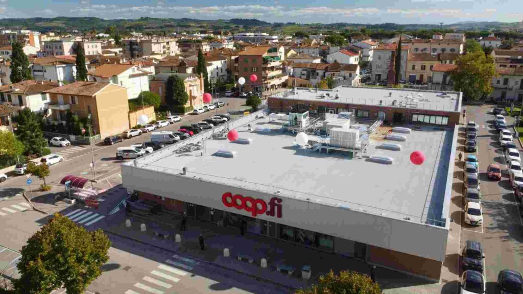 I nuovi banchi frigo utilizzano esclusivamente CO2 come gas refrigerante, una scelta ecologica che riduce l’impatto ambientale ed i banchi refrigerati sono dotati di sportelli di chiusura per migliorare la conservazione della merce ed il confort degli spazi limitrofi. È stato installato un impianto a pompa di calore per recuperare il calore dell’impianto frigo alimentare per riscaldare l’acqua calda sanitaria e l’ambiente. Sono stati implementati avanzati sistemi di monitoraggio dei consumi energetici e di controllo dei macchinari che permettono di intercettare tempestivamente un eventuale malfunzionamento.