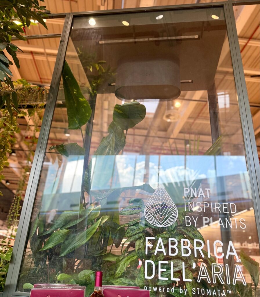 La Fabbrica dell’aria è una bio-macchina, realizzata da Pnat, società fondata come spin-off dell’Università di Firenze: ha l’aspetto di una serra modulare che contiene al suo interno varie tipologie di piante: non ha solo una funzione estetica, ma è in grado di aspirare e filtrare l’aria, restituendola depurata e riossigenata attraverso le foglie e le radici.