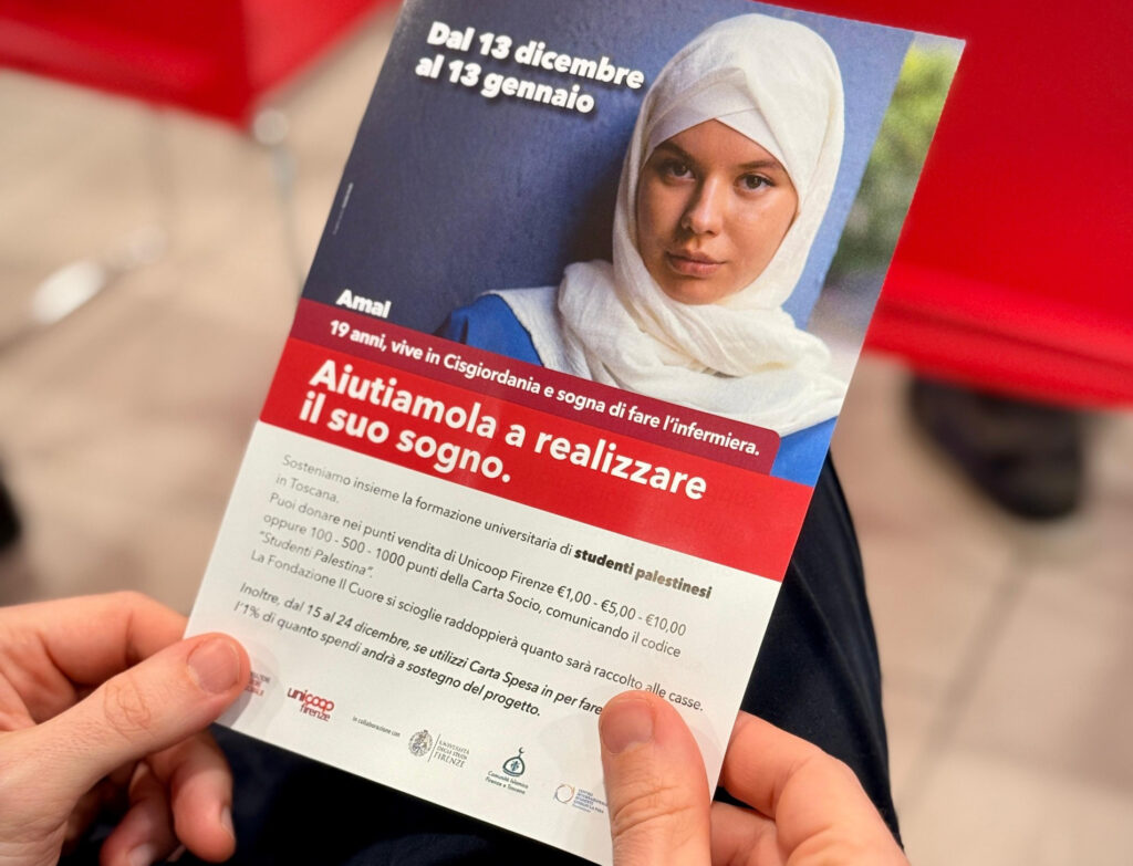Per la campagna di solidarietà natalizia la Fondazione Il Cuore si scioglie e Unicoop Firenze promuovono dal 13 dicembre al 13 gennaio la raccolta fondi per il sostegno allo studio di giovani palestinesi, progetto in collaborazione con l’Università di Firenze, la Comunità Islamica di Firenze e Toscana, il Centro Internazionale Studenti Giorgio La Pira e la Fondazione Giovanni Paolo II.